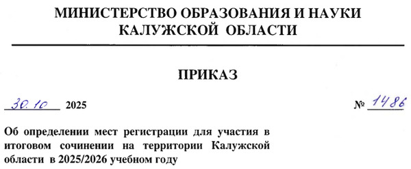 | Приказ МОН КО №1486 от 30.10.2025 Места регистарции на сочинение ВПЛ, СПО, ин.ОО | |